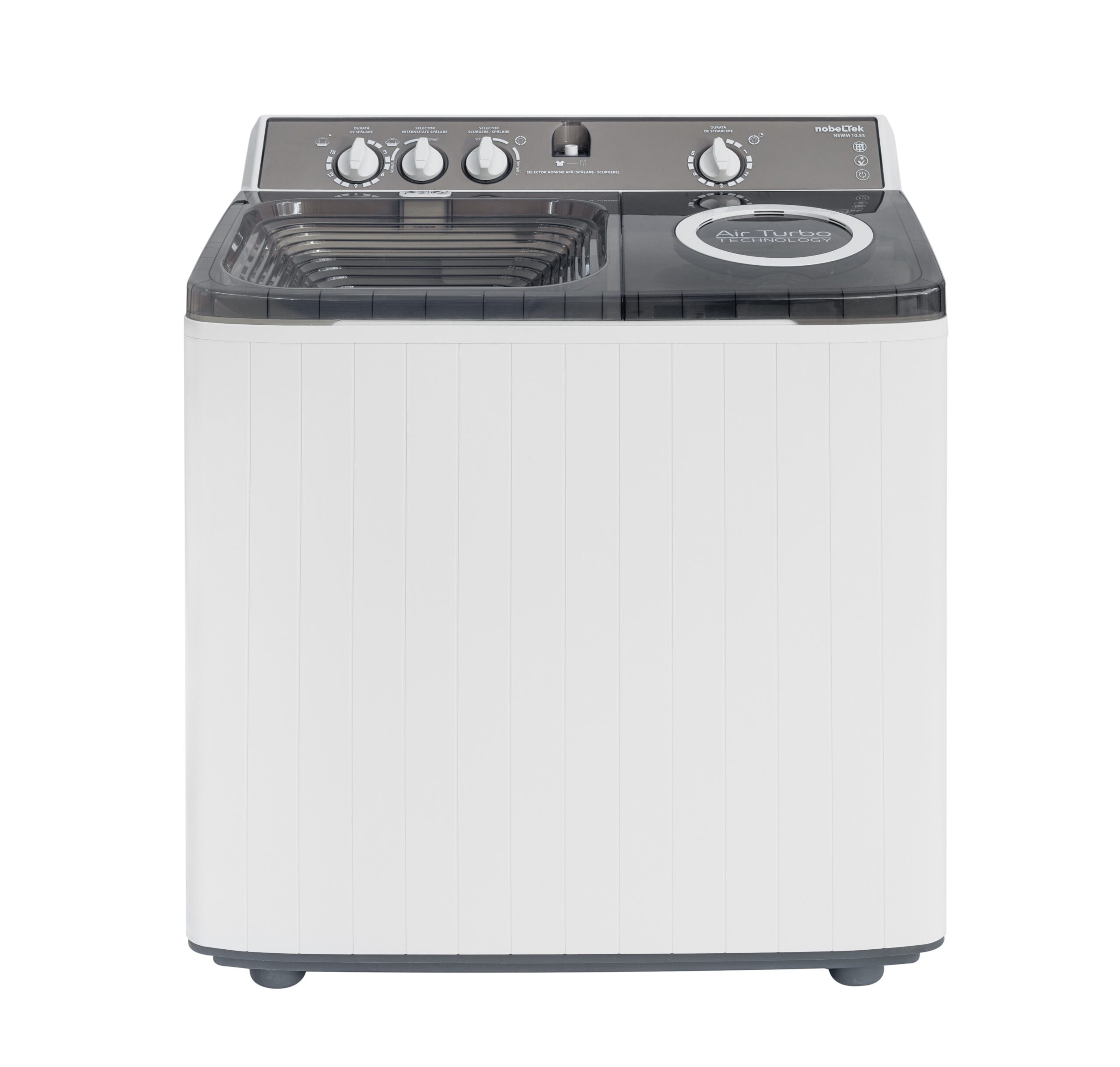 Masina de spalat rufe semi-automata Nobeltek NSWM 10.5S, evacuare apa uzata prin cadere libera, Alb/Silver